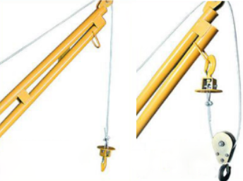 小吊機具有不錯的載重能力,它的額定負載可以根據鋼絲繩連接方式的不同而發生大幅度的改變,接下來我們就來了解一下小吊機鋼絲繩不同的連接方式。小吊機臂桿的頂端下方大多配有一條固定的吊環,這個吊環的作用就是將小吊機單獨定滑輪的吊運方式改變為定動滑輪組,我們都知道,定滑輪只能改變力的方向而不能改變里的大小,而滑輪組既可以改變力的方向,又可以改變力的大小,從而變相的為小吊機增加了一倍的載重量。小吊機的這種設計方式充分的利用了力學原理,使用者可以根據不同的吊運重量來選擇不同的吊運方式。