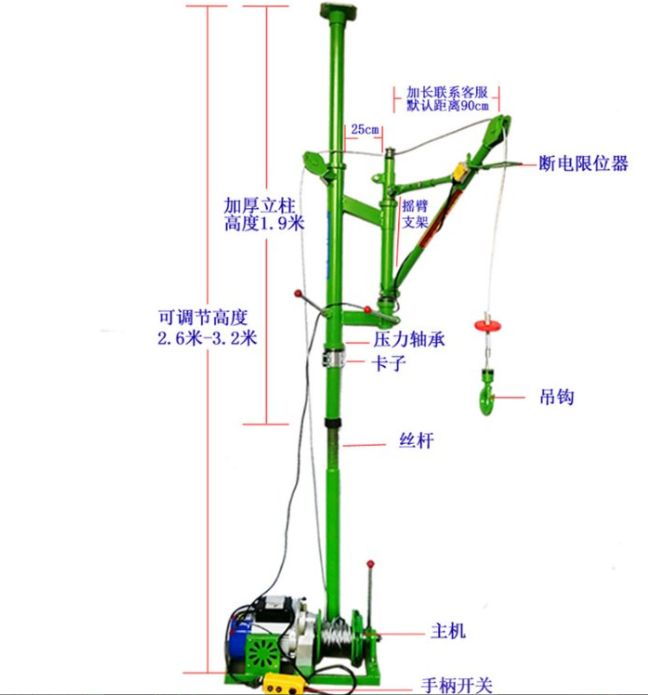 單立柱吊運機(jī)的優(yōu)點是上頂天下頂?shù)兀惭b簡單,不用打孔,吊臂可360度旋轉(zhuǎn),支撐桿高度可以調(diào)節(jié),電機(jī)帶離合可快速下放,一秒到底,可在室內(nèi)、樓道、陽臺等上下距離不太高的場合吊裝沙子、水泥、門窗、護(hù)欄等,簡單好用,攜帶方便。